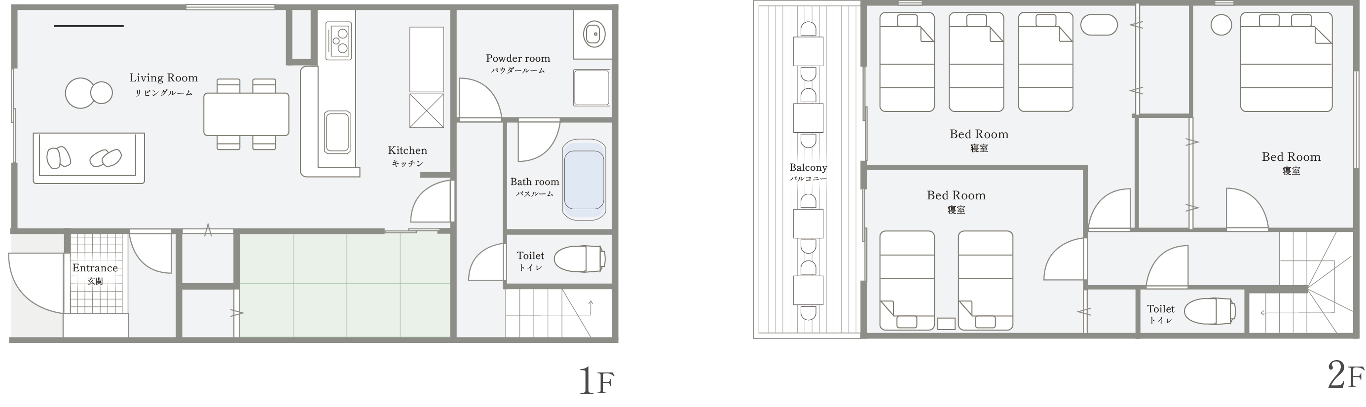 シングルベッド5台・キングベッド1台